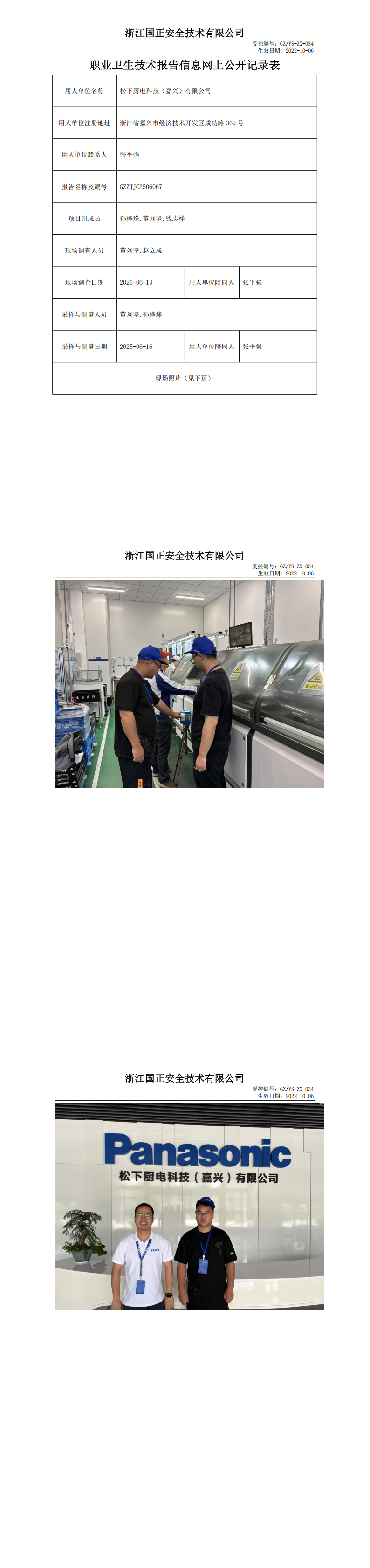 GZZJJC2506067_松下厨电科技(嘉兴)有限公司工作场所职业病危害因素检测报告网上公开信息表