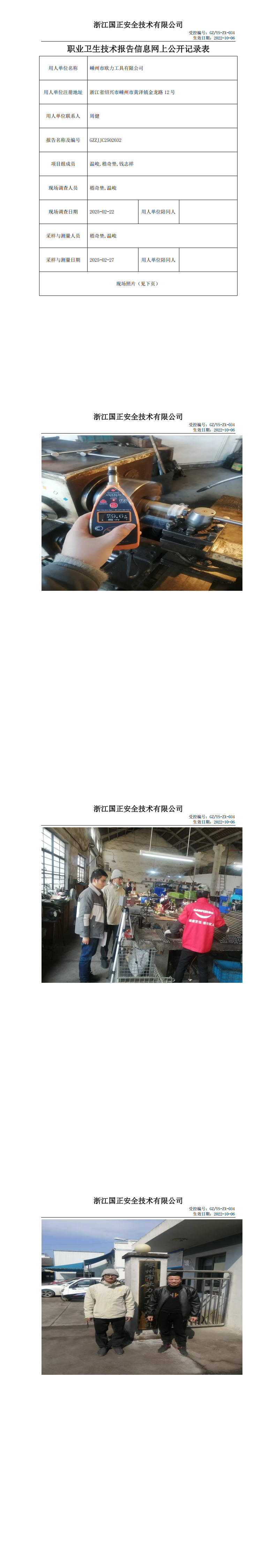 GZZJJC2502032嵊州市欧力工具有限公司工作场所职业病危害因素检测报告网上公开信息表