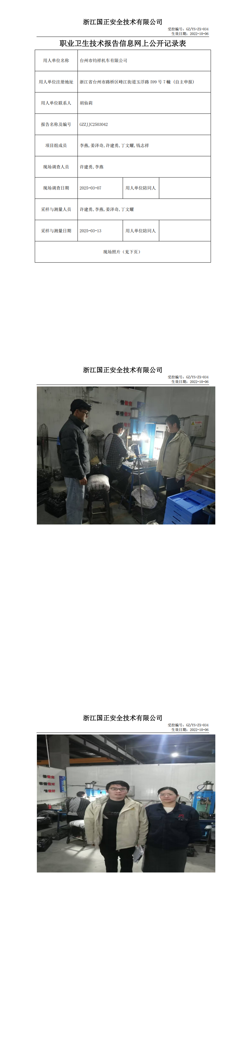 GZZJJC2503042台州市钧祥机车有限公司工作场所职业病危害因素检测报告网上公开信息表