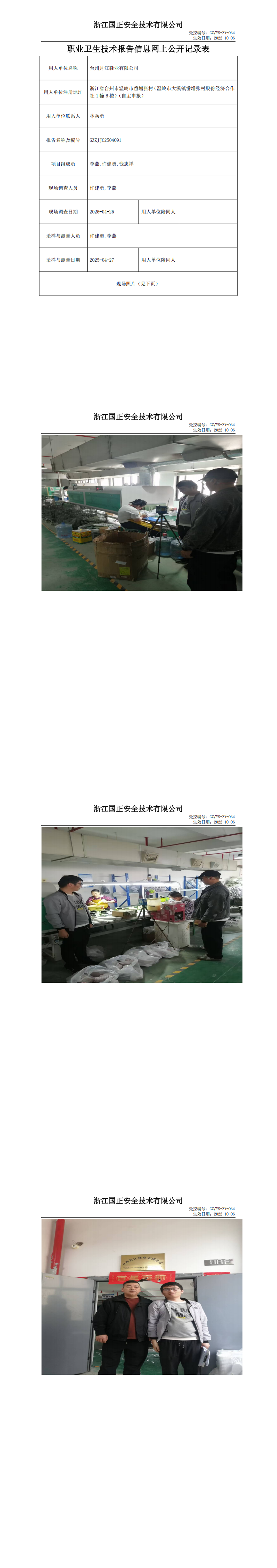 GZZJJC2504091台州月江鞋业有限公司工作场所职业病危害因素检测报告网上公开信息表