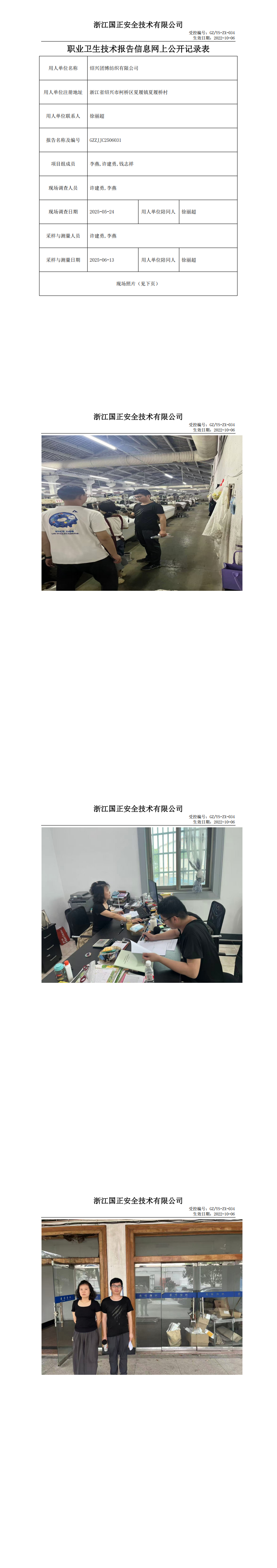 GZZJJC2506031绍兴团博纺织有限公司工作场所职业病危害因素检测报告网上公开信息表