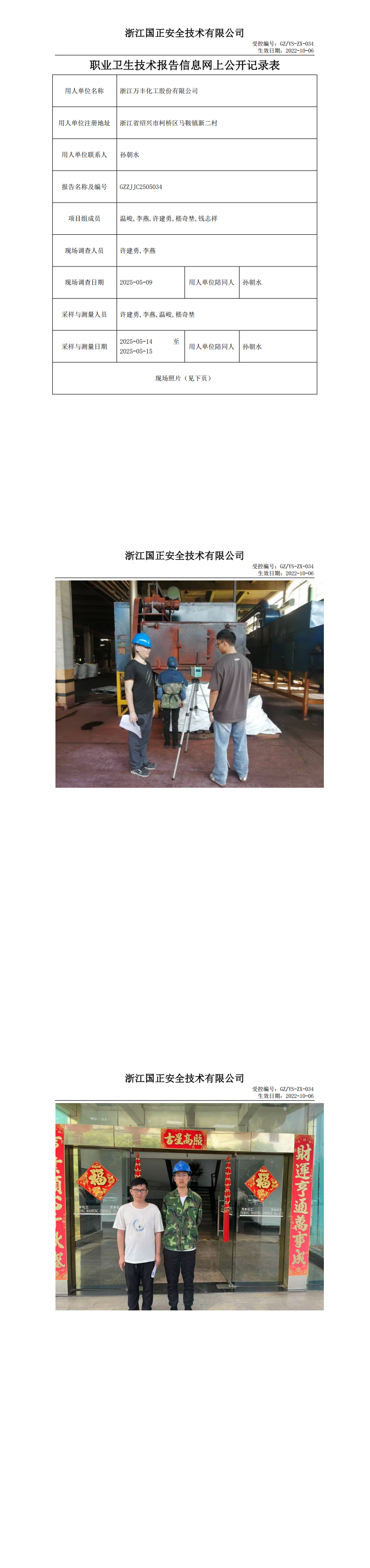 GZZJJC2505034浙江万丰化工股份有限公司工作场所职业病危害因素检测报告网上公开信息表