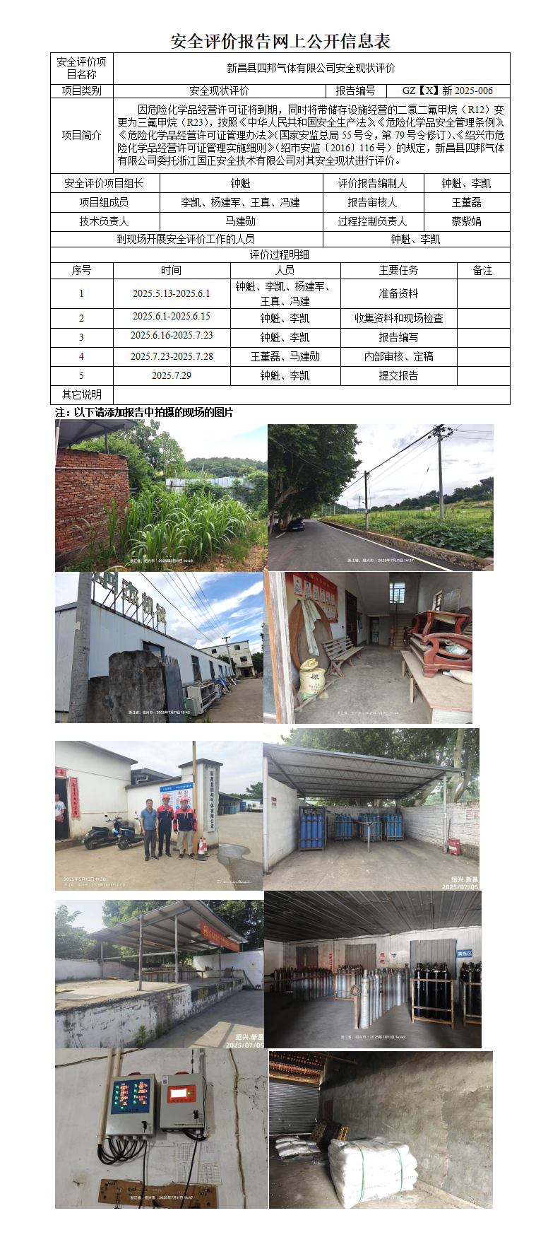GZ【X】新2025-006新昌县四邦气体有限公司安全现状评价网上信息公开表