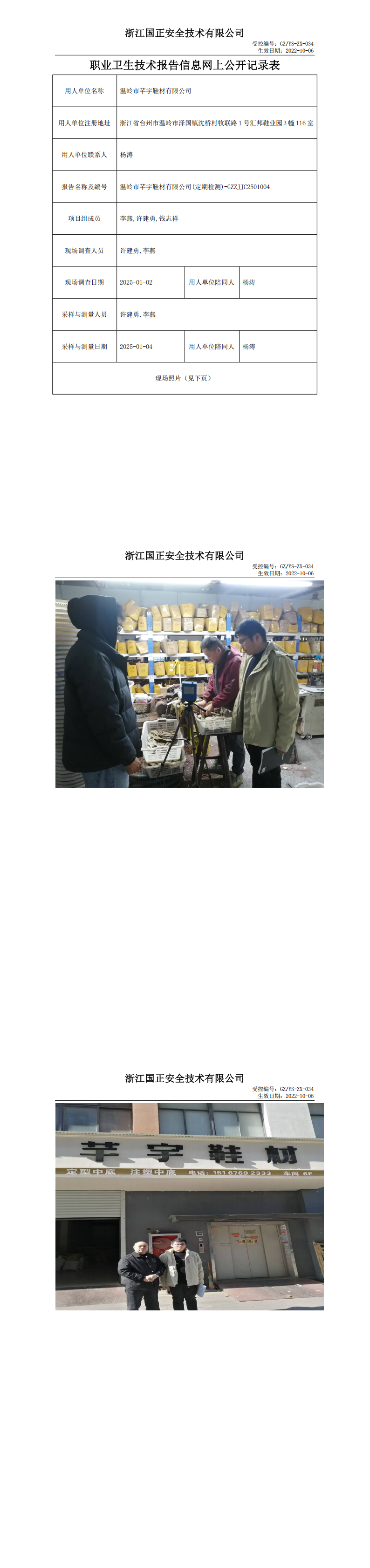 GZZJJC2501004温岭市芊宇鞋材有限公司工作场所职业病危害因素检测报告网上公开信息表