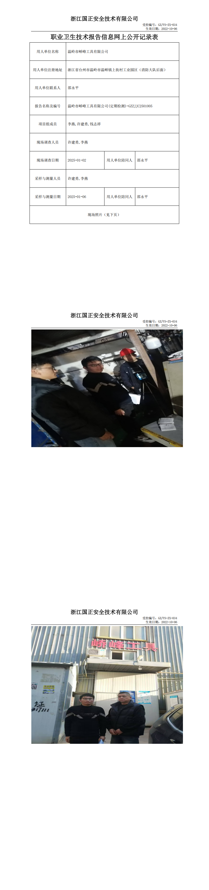 GZZJJC2501005温岭市峤峰工具有限公司工作场所职业病危害因素检测报告网上公开信息表
