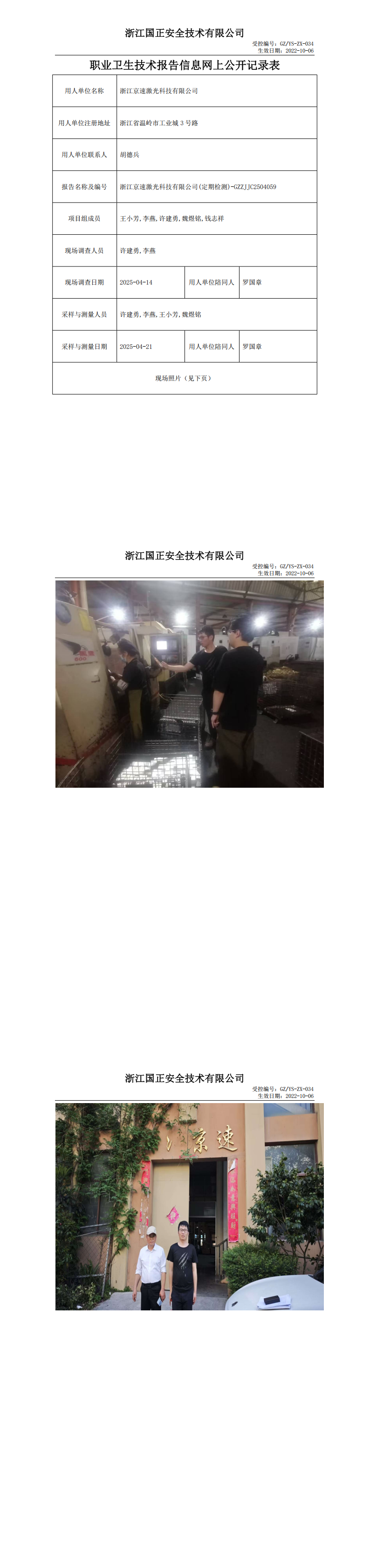GZZJJC2504059浙江京速激光科技有限公司工作场所职业病危害因素检测报告网上公开信息表