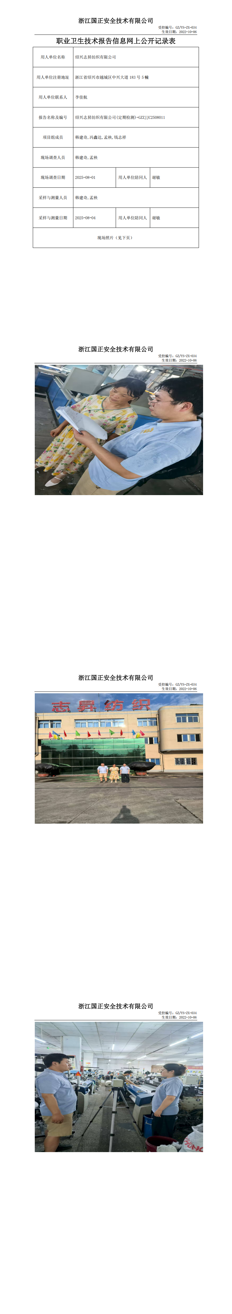 GZZJJC2508011_绍兴志昇纺织有限公司工作场所职业病危害因素检测报告网上公开信息表