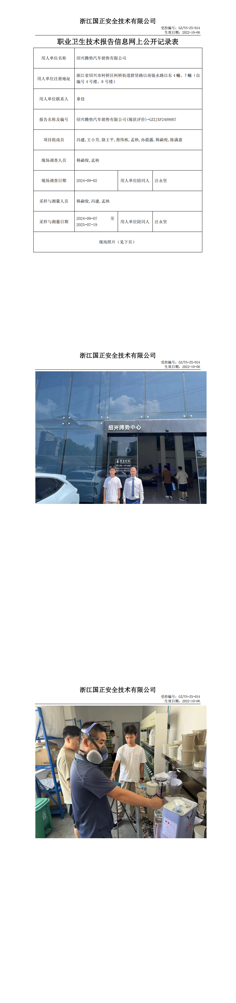 职业卫生检测与评价报告网上公开表_绍兴腾势汽车销售有限公司(现状评价)-GZZJXP2409007_绍兴腾势汽车销售有限公司