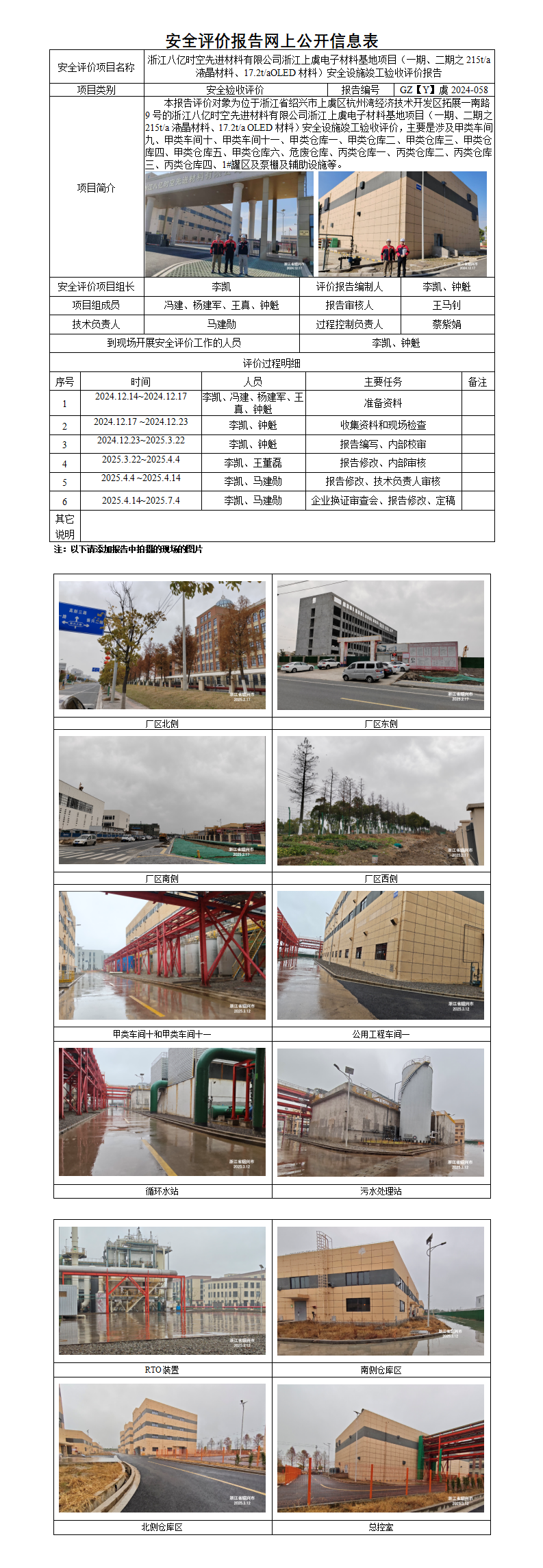 GZ【Y】虞2024-058浙江八亿时空先进材料有限公司项目(一期、二期)安全设施竣工验收评价报告 网上公开表