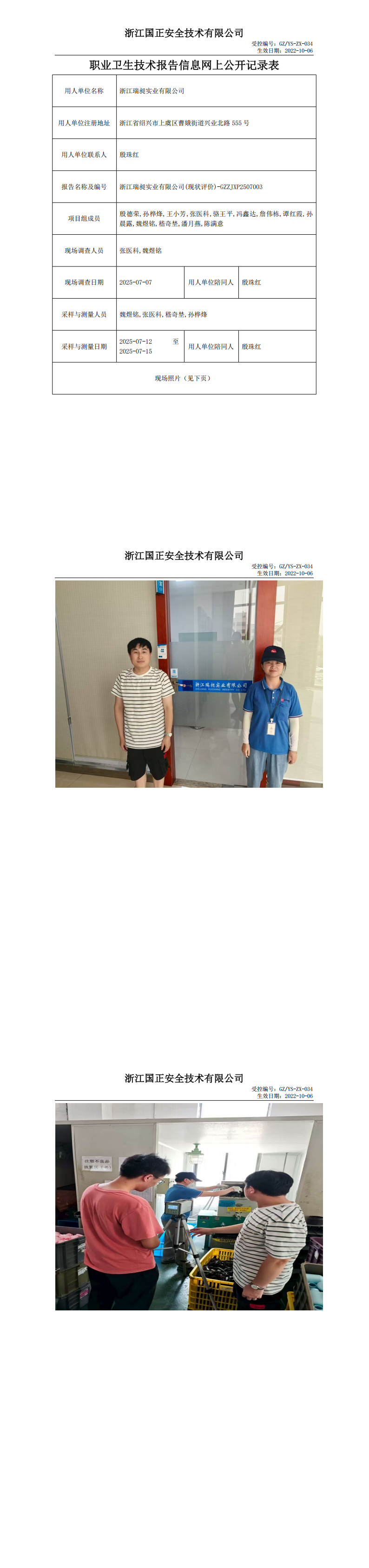 职业卫生检测与评价报告网上公开表_浙江瑞昶实业有限公司(现状评价)-GZZJXP2507003_浙江瑞昶实业有限公司