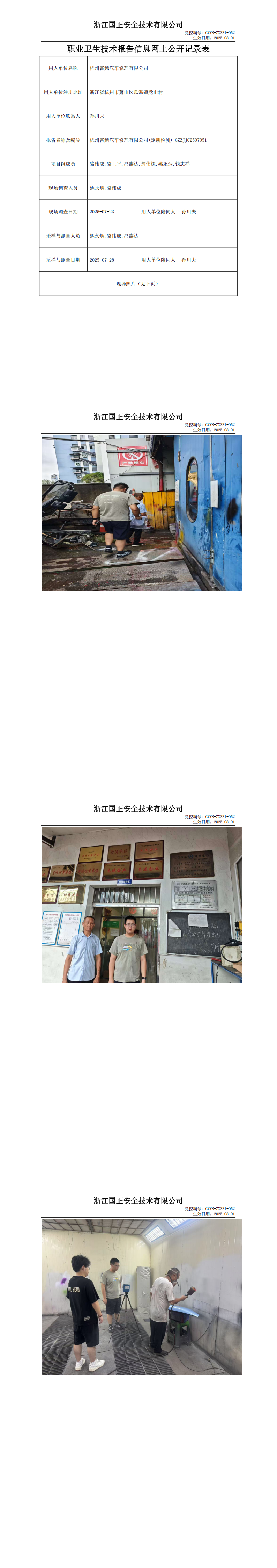 GZZJJC2507051_杭州富越汽车修理有限公司工作场所职业病危害因素检测报告网上公开信息表