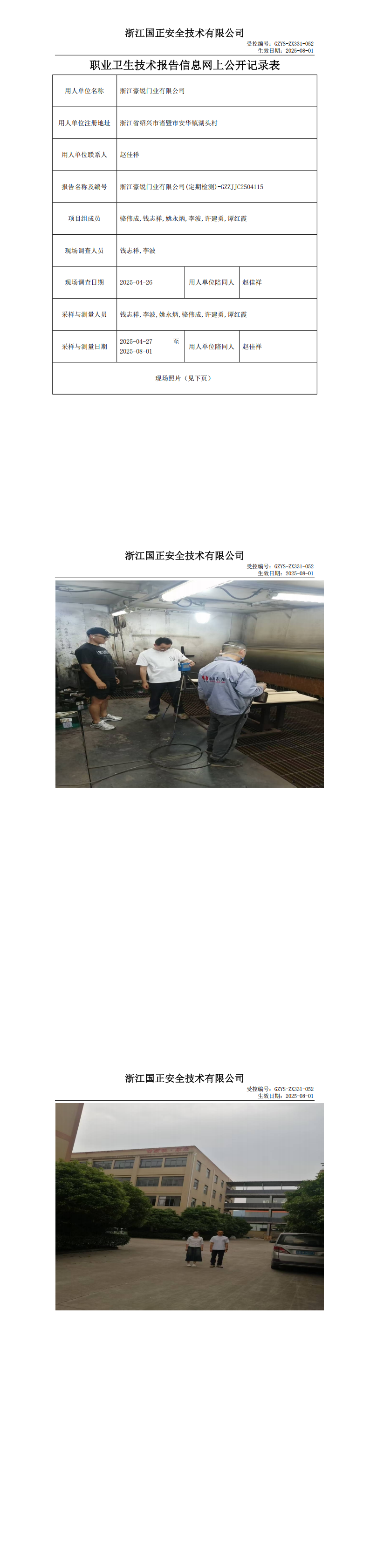 GZZJJC2504115浙江豪锐门业有限公司工作场所职业病危害因素检测报告网上公开信息表_00