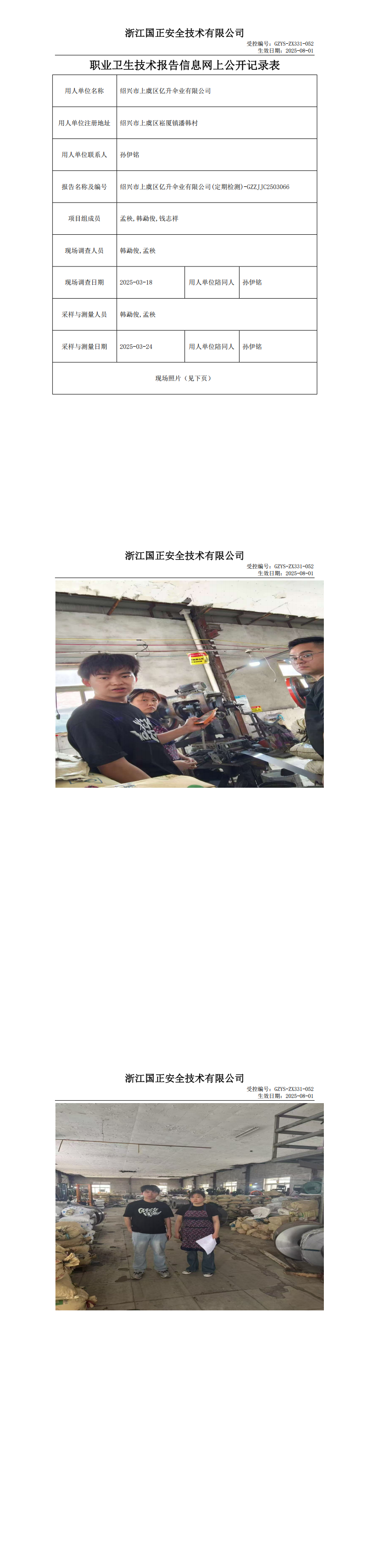 绍兴市上虞区亿升伞业有限公司职业卫生检测与评价报告网上公开表