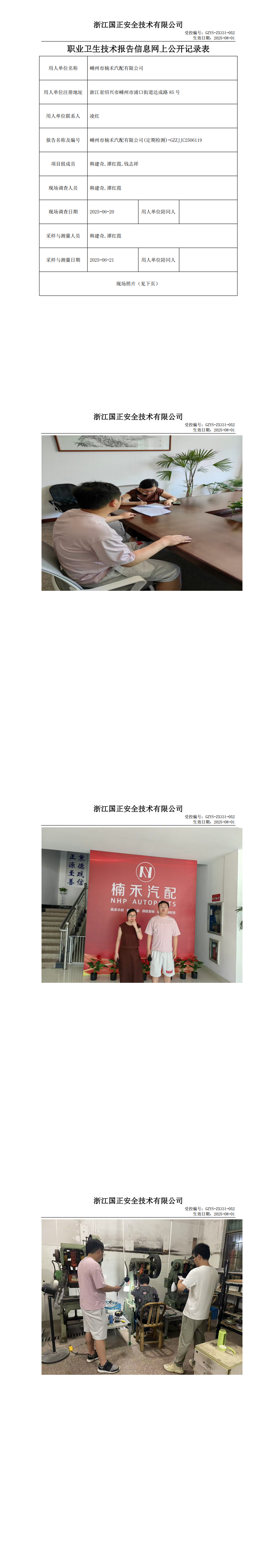 GZZJJC2506119_嵊州市楠禾汽配有限公司工作场所职业病危害因素检测报告网上公开信息表