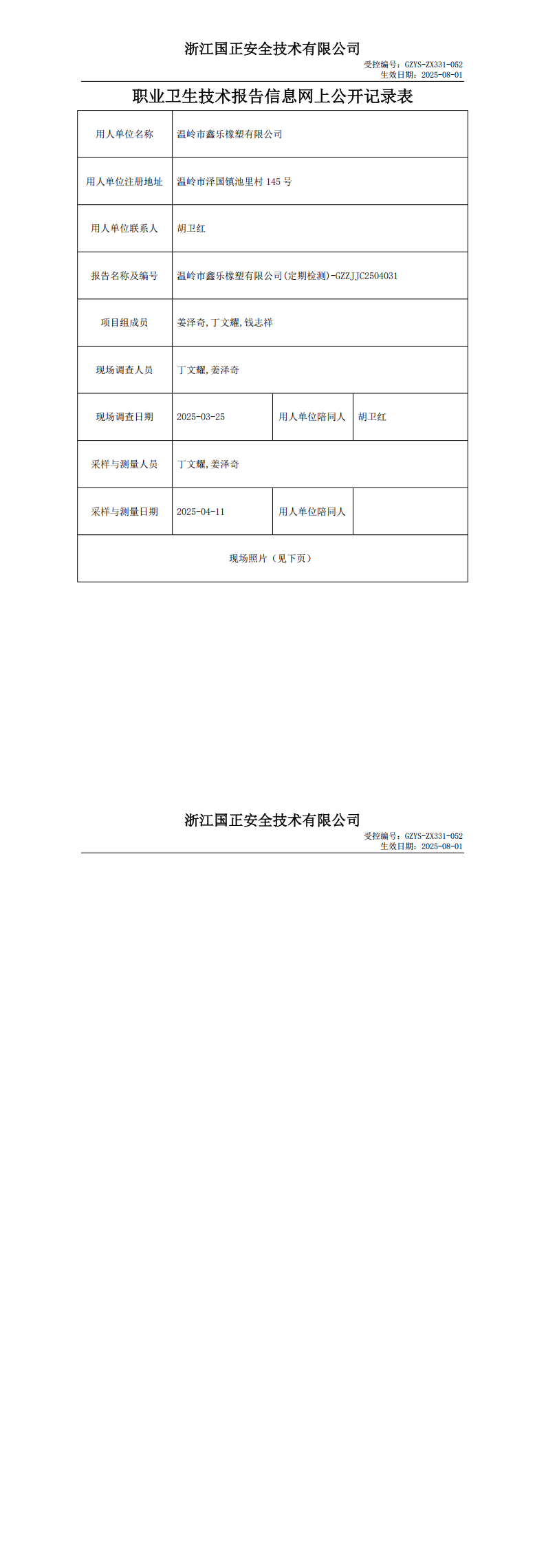 GZZJJC2504031_温岭市鑫乐橡塑有限公司职业卫生检测与评价报告网上