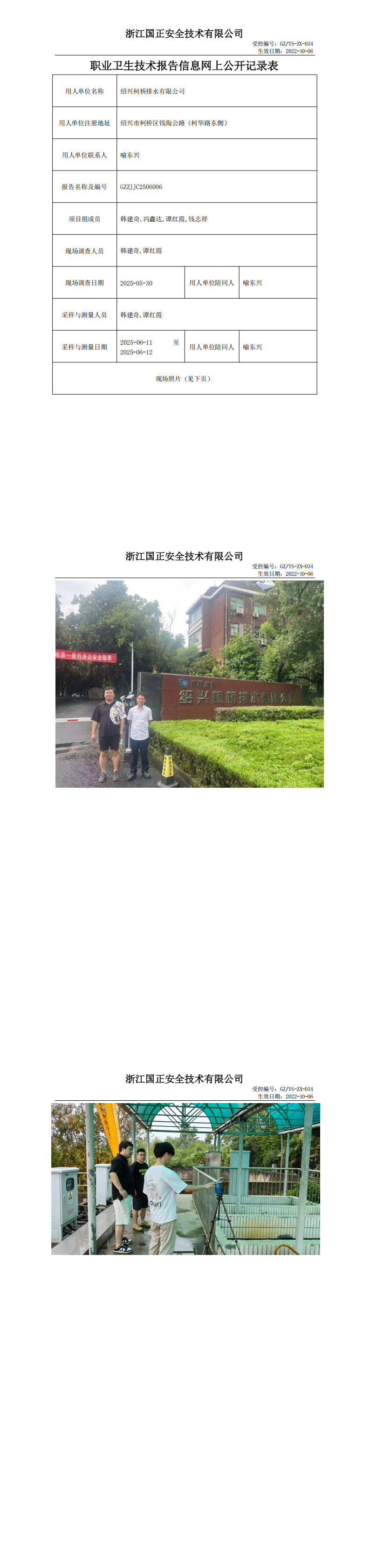 GZZJJC2506006_绍兴柯桥排水有限公司工作场所职业病危害因素检测报告网上公开信息