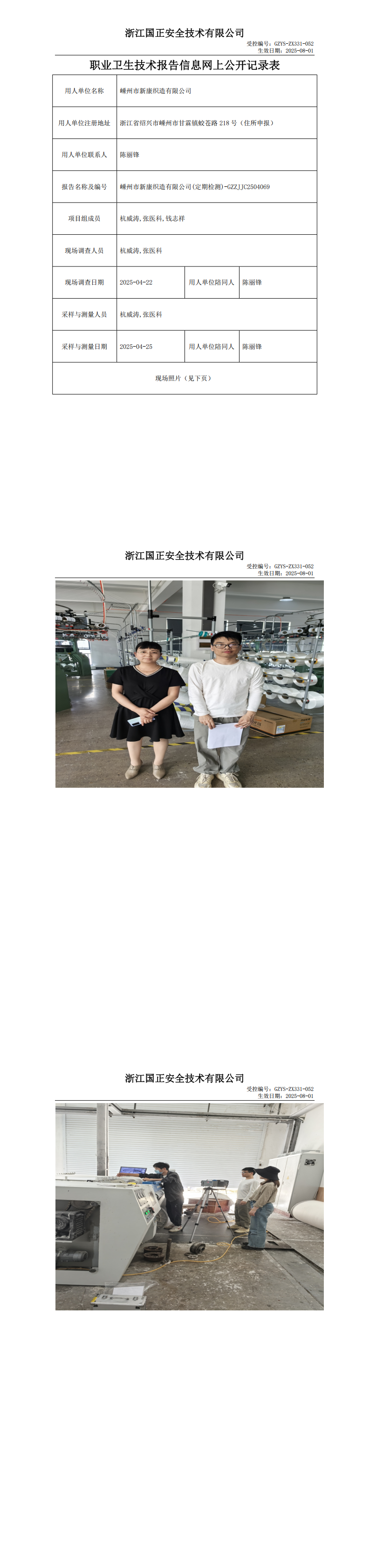 GZZJJC2504069_嵊州市新康织造有限公司工作场所职业病危害因素检测报告网上公开信息表