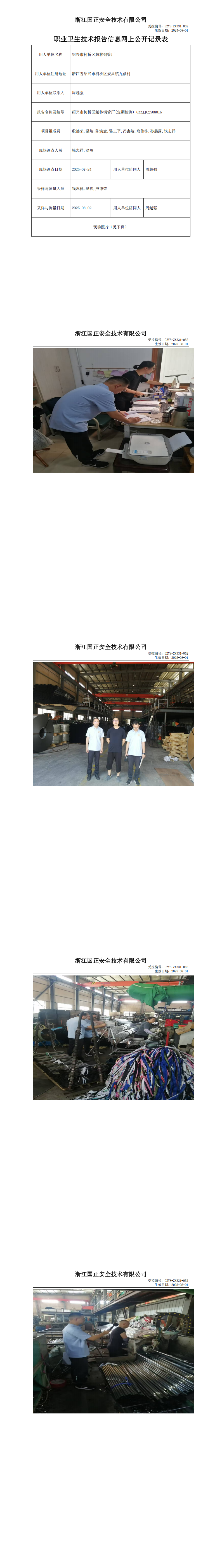 GZZJJC2508016绍兴市柯桥区越林钢管厂工作场所职业病危害因素检测报告网上公开信息表