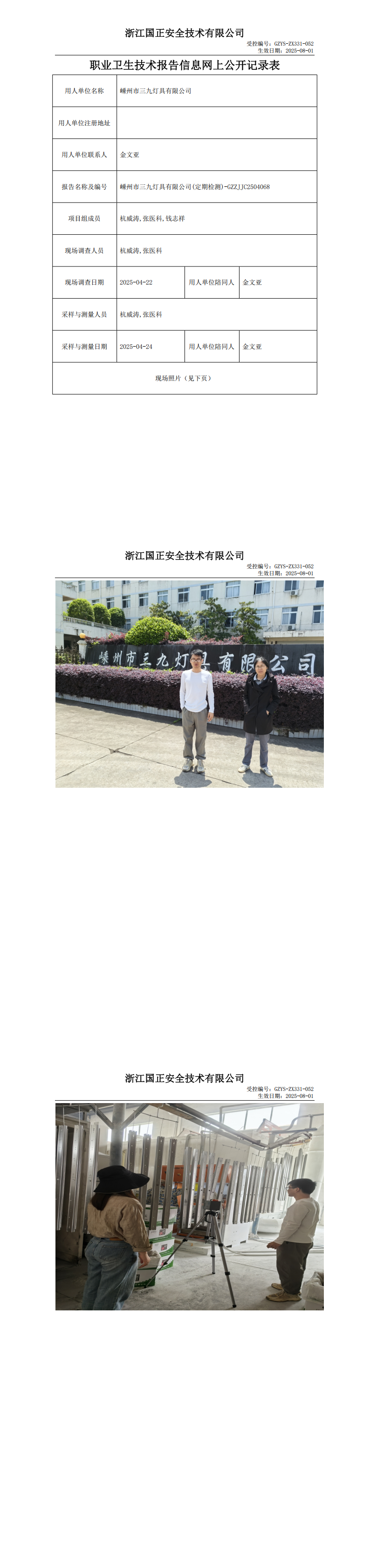 GZZJJC2504068_嵊州市三九灯具有限公司工作场所职业病危害因素检测报告网上公开信息表