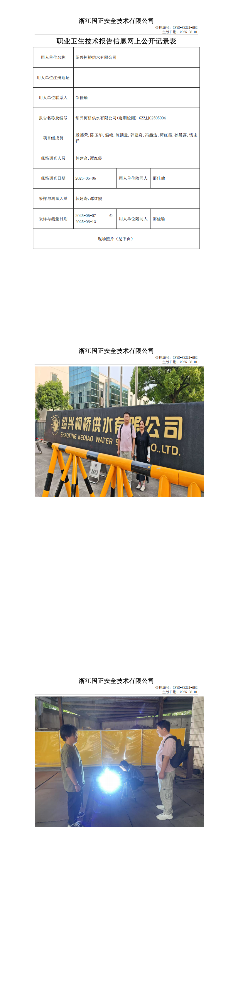 GZZJJC2505004_绍兴柯桥供水有限公司工作场所职业病危害因素检测报告网上公开信息表