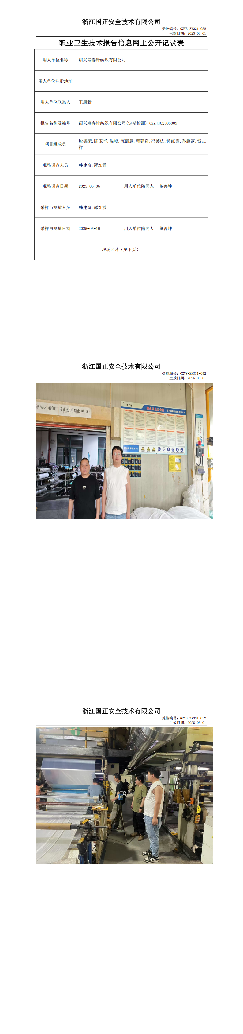 GZZJJC2505009_绍兴寿春针纺织有限公司工作场所职业病危害因素检测报告网上公开信息表