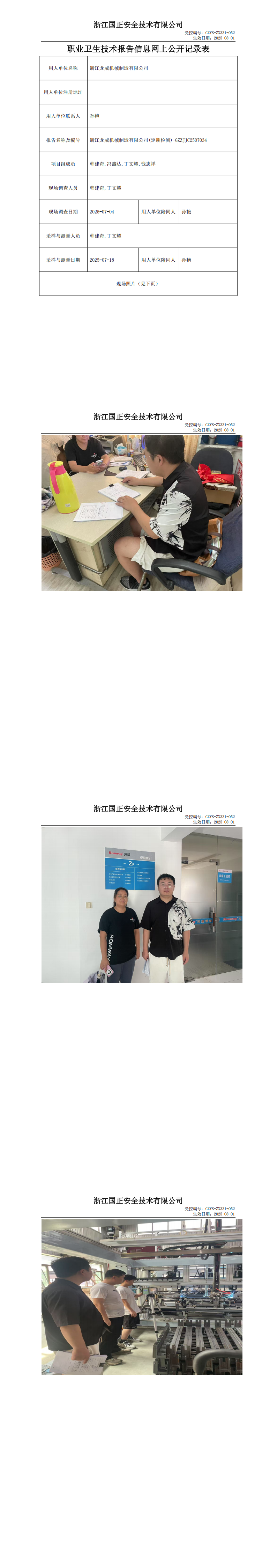 GZZJJC2507034_浙江龙威机械制造有限公司工作场所职业病危害因素检测报告网上公开信息表