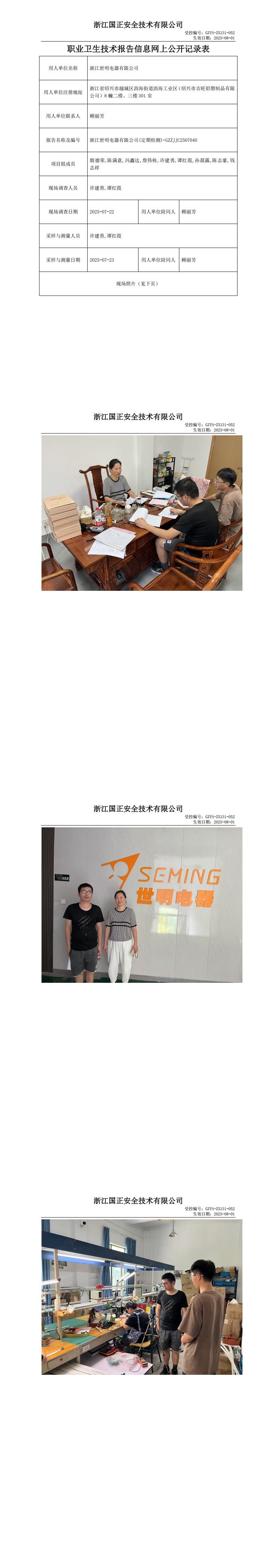 GZZJJC2507040浙江世明电器有限公司工作场所职业病危害因素检测报告网上公开信息表