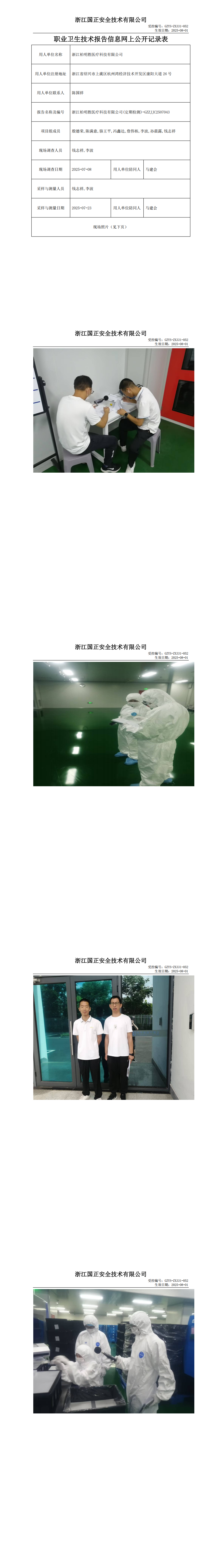GZZJJC2507043浙江柏明胜医疗科技有限公司工作场所职业病危害因素检测报告网上公开信息表