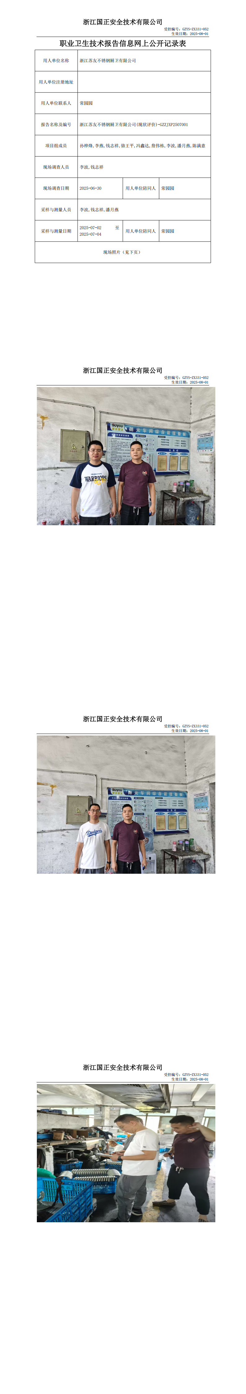 GZZJXP2507001_浙江苏友不锈钢厨卫有限公司工作场所职业病危害因素检测报告网上公开信息表
