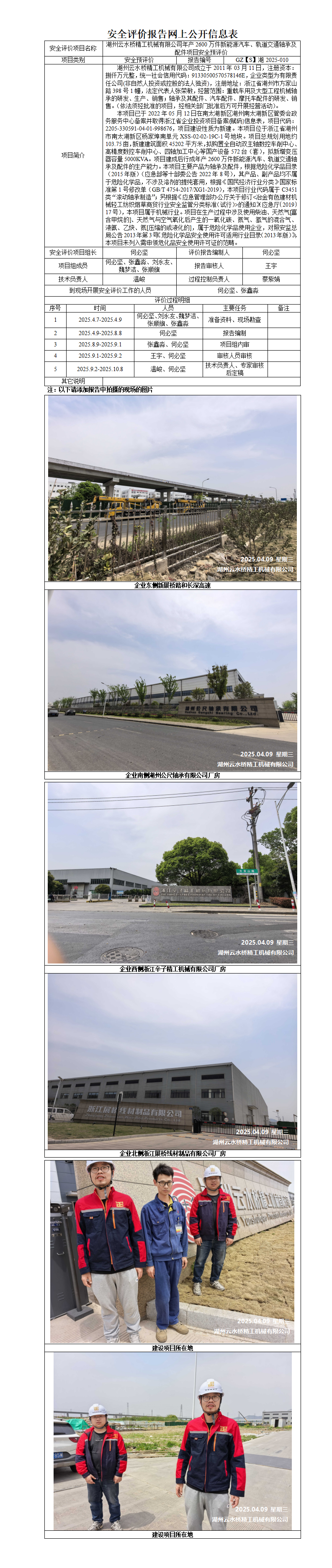 GZ【S】湖2025-010湖州云水桥精工机械有限公司年产2600万件新能源汽车、轨道交通轴承及配件项目安全预评价网上信息公开