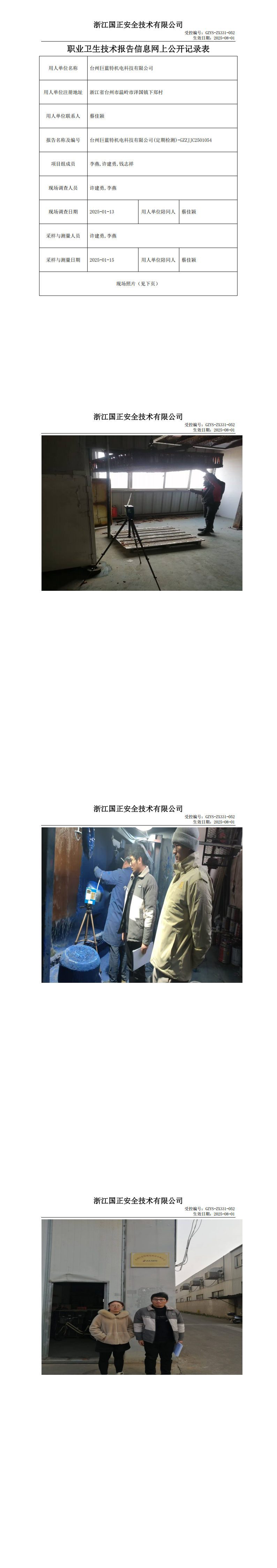 GZZJJC2501054台州巨蓝特机电科技有限公司工作场所职业病危害因素检测报告网上公开信息表