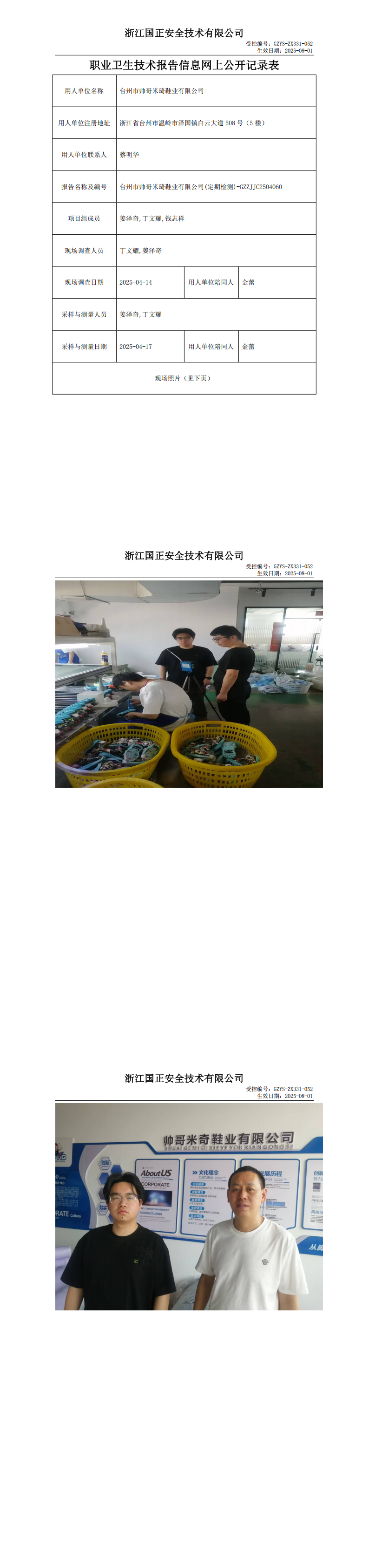 GZZJJC2504060台州市帅哥米琦鞋业有限公司工作场所职业病危害因素检测报告网上公开信息表