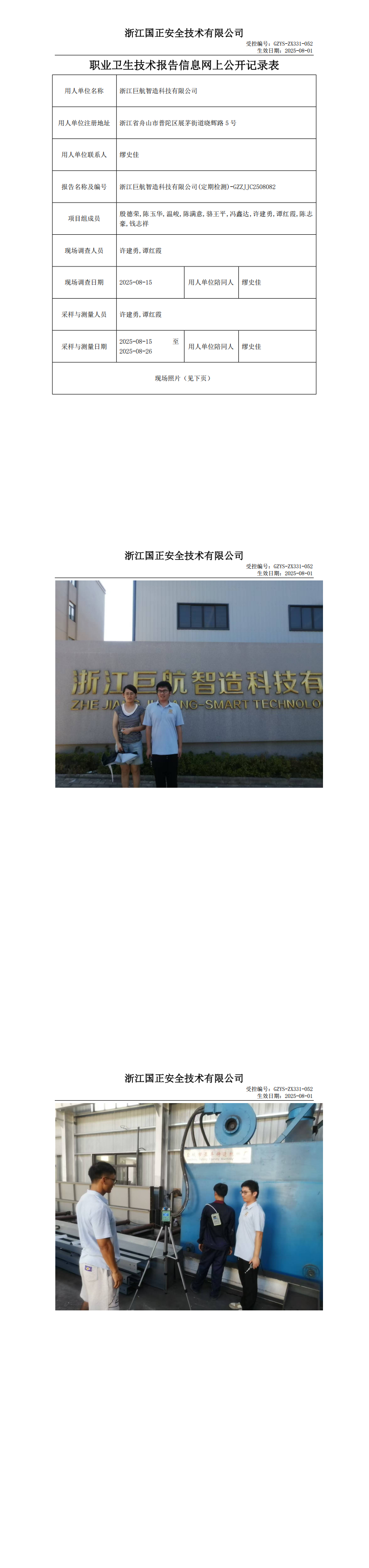 GZZJJC2508082浙江巨航智造科技有限公司工作场所职业病危害因素检测报告网上公开信息表
