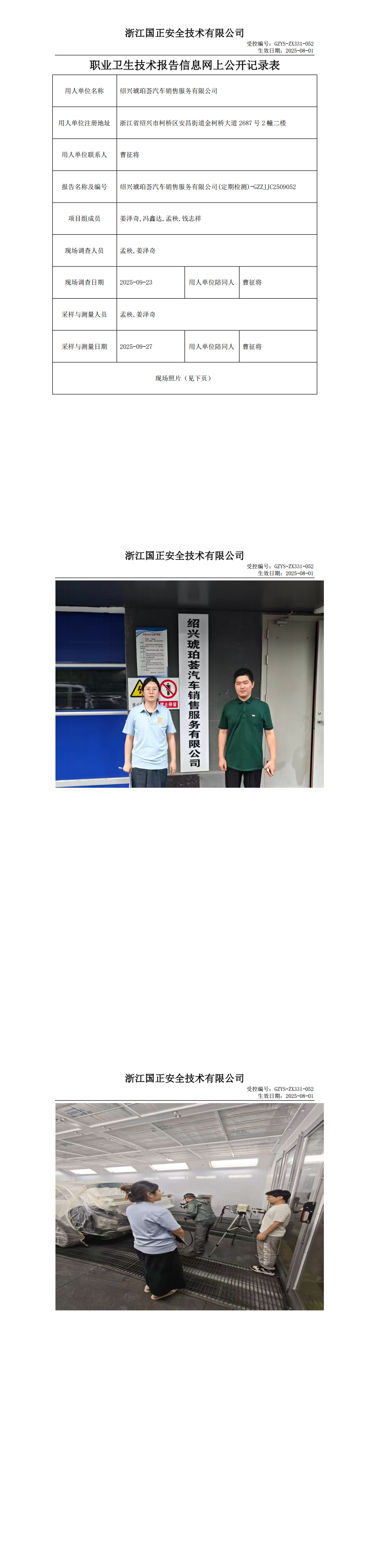 GZZJJC2509052_绍兴琥珀荟汽车销售服务有限公司职业卫生检测与评价报告网上公开表