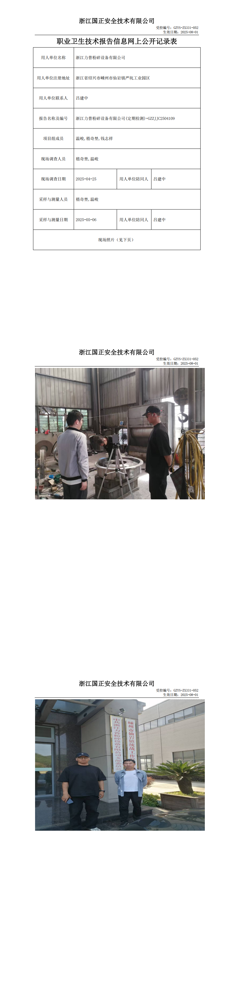 GZZJJC2504109浙江力普粉碎设备有限公司工作场所职业病危害因素检测报告网上公开信息表