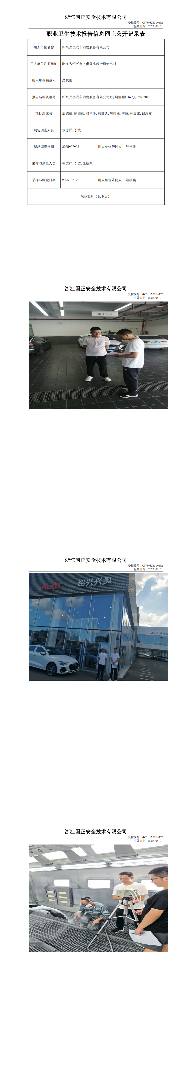 GZZJJC2507042绍兴兴奥汽车销售服务有限公司工作场所职业病危害因素检测报告网上公开信息表