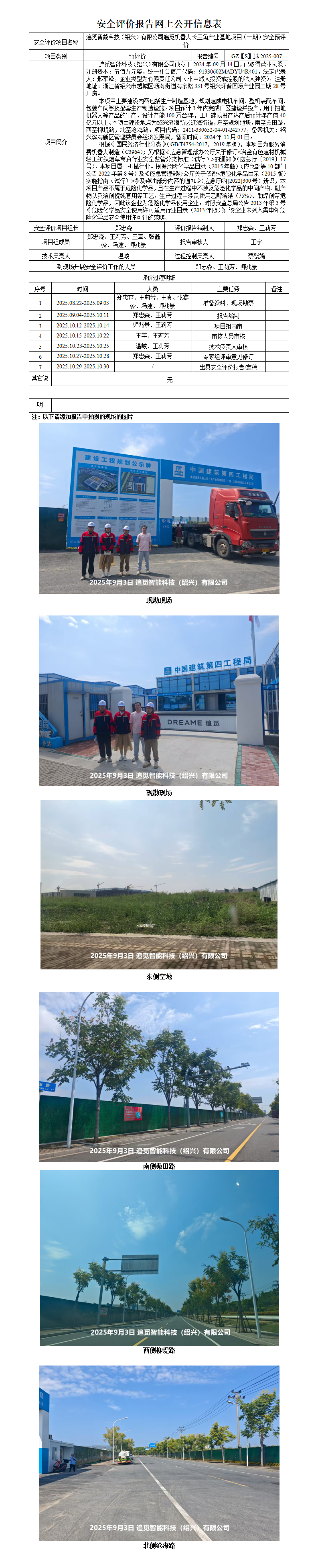 GZ【S】越2025-007追觅智能科技(绍兴)有限公司追觅机器人长三角产业基地项目(一期)安全预评价 网上公开信息表