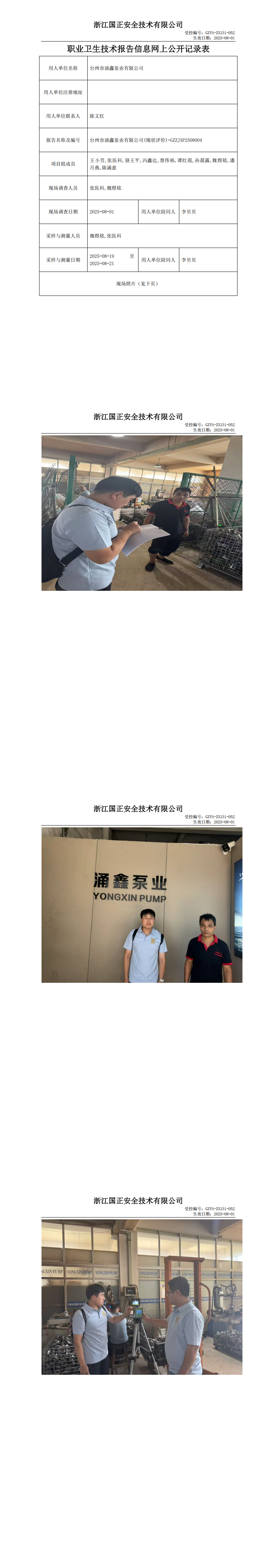 GZZJXP2508004台州市涌鑫泵业有限公司(现状评价) 职业卫生检测与评价报告网上公开表