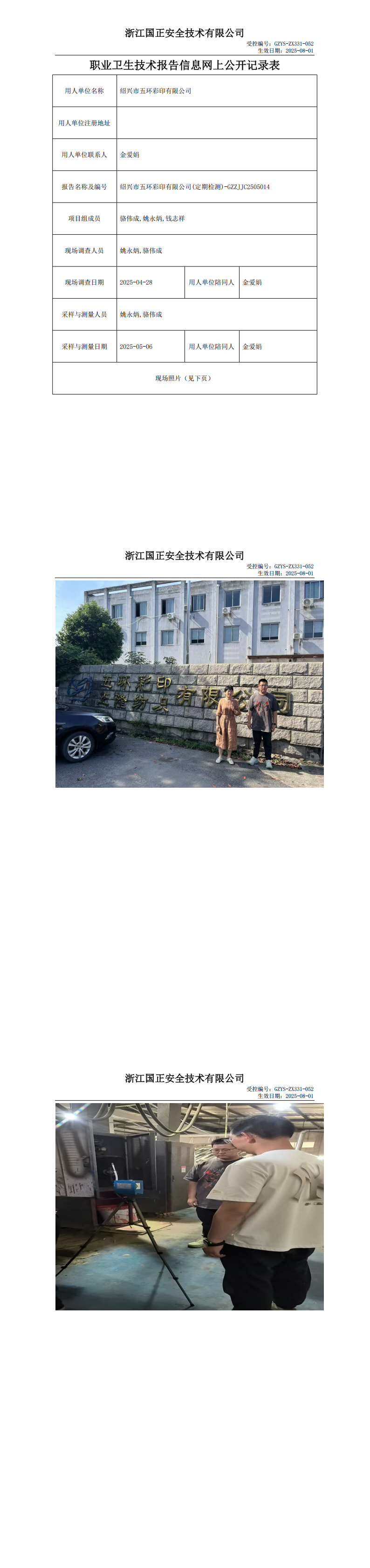 GZZJJC2505014_绍兴市五环彩印有限公司工作场所职业病危害因素检测报告网上公开信息表