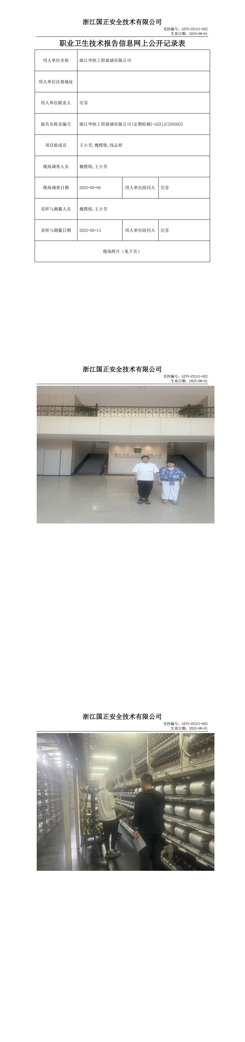GZZJJC2505033_浙江华恒工程玻璃有限公司工作场所职业病危害因素检测报告网上公开信息表