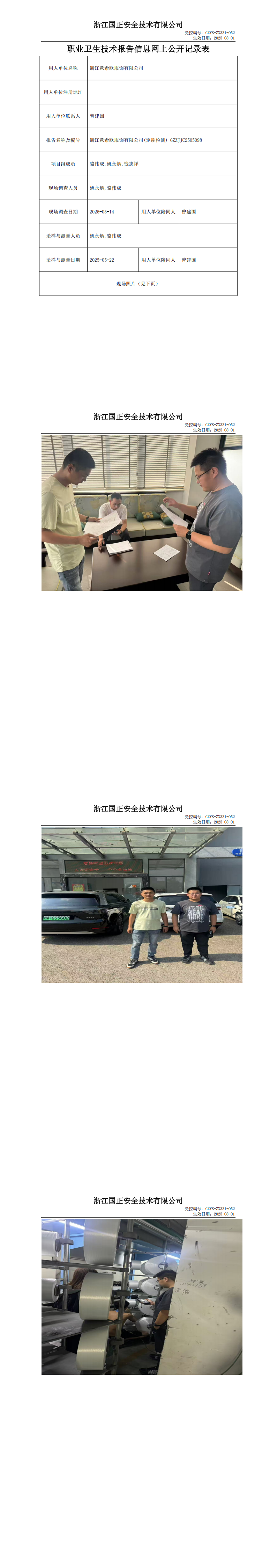 GZZJJC2505098_浙江意希欧服饰有限公司职业卫生检测与评价报告网上公开表