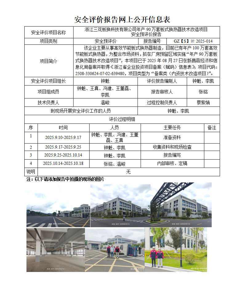 GZ【S】新2025-014浙江三花板换科技有限公司年产90万套板式换热器技术改造项目安全预评价网上信息公开表