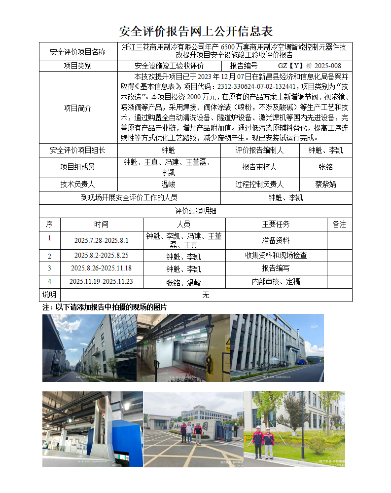 GZ【Y】新2025-008浙江三花商用制冷有限公司年产6500万套商用制冷空调智能控制元器件技改提升项目安全设施竣工验收评价网上信息公开表