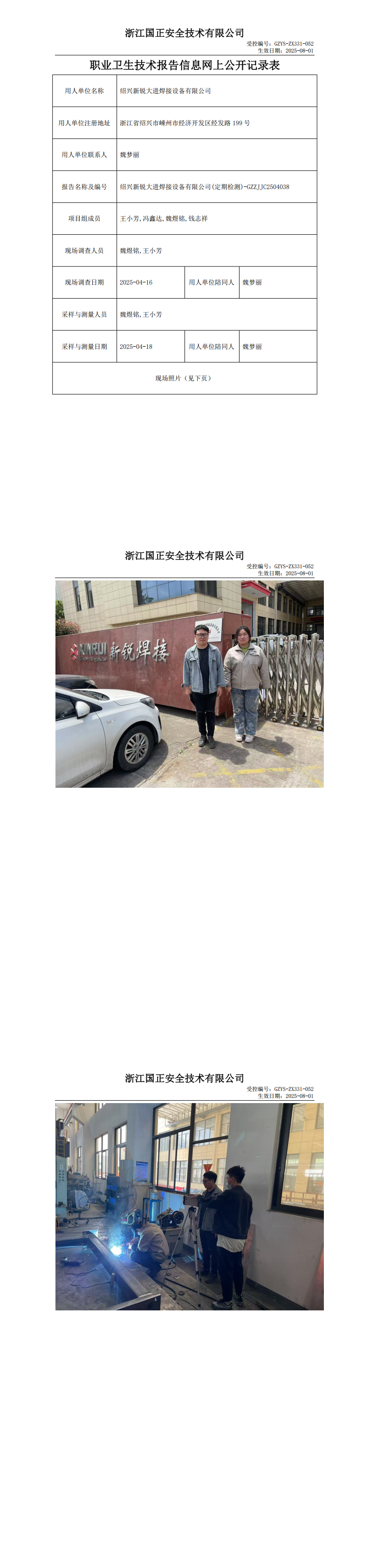GZZJJC2504038_绍兴新锐大进焊接设备有限公司工作场所职业病危害因素检测报告网上公开信息表