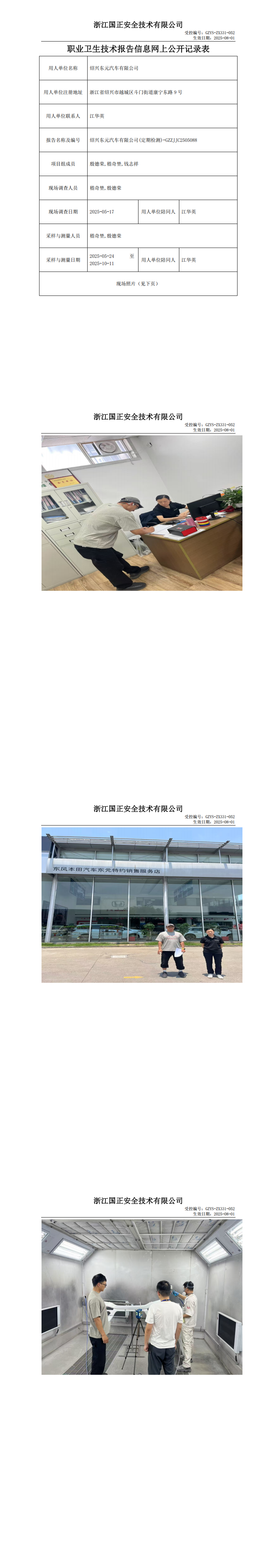 GZZJJC2505088绍兴东元汽车有限公司工作场所职业病危害因素检测报告网上公开信息表