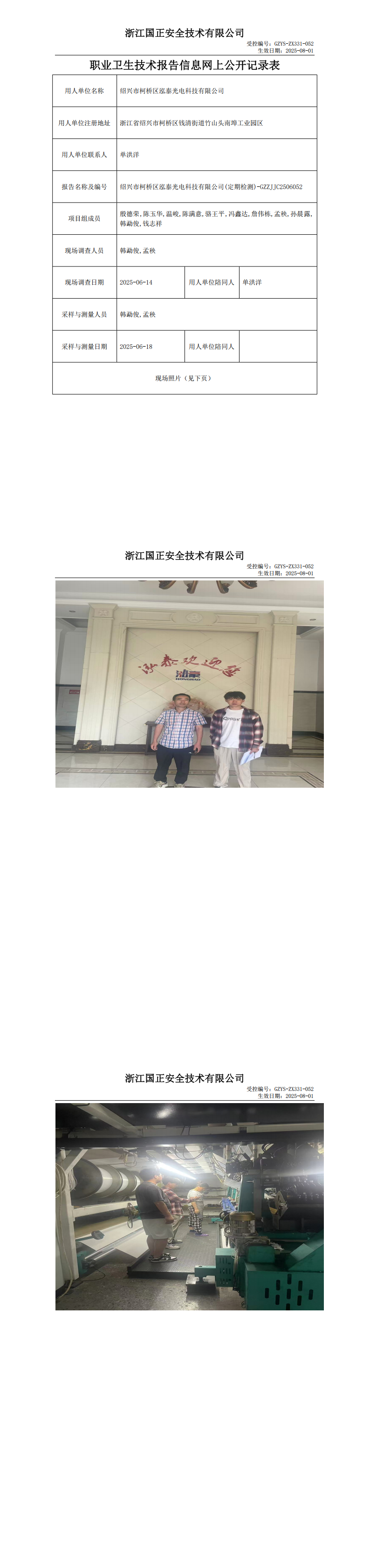 GZZJJC2506052_绍兴市柯桥区泓泰光电科技有限公司工作场所职业病危害因素检测报告网上公开信息表