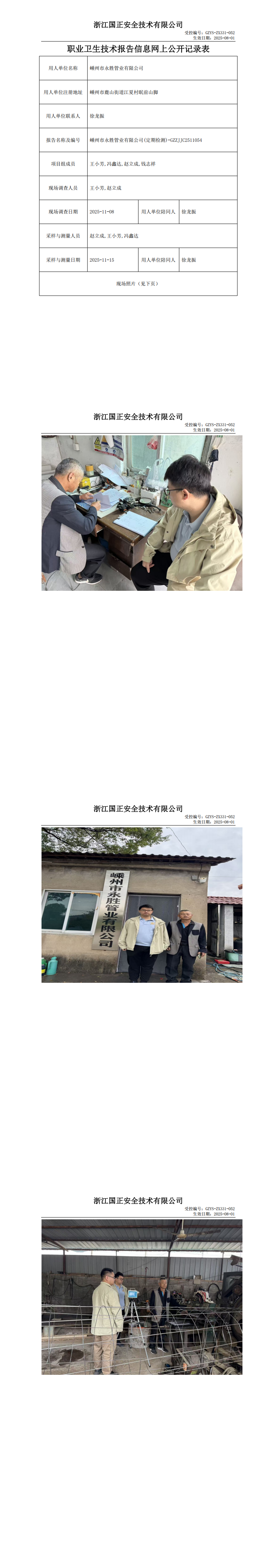 GZZJJC2511054_嵊州市永胜管业有限公司工作场所职业病危害因素检测报告网上公开信息表