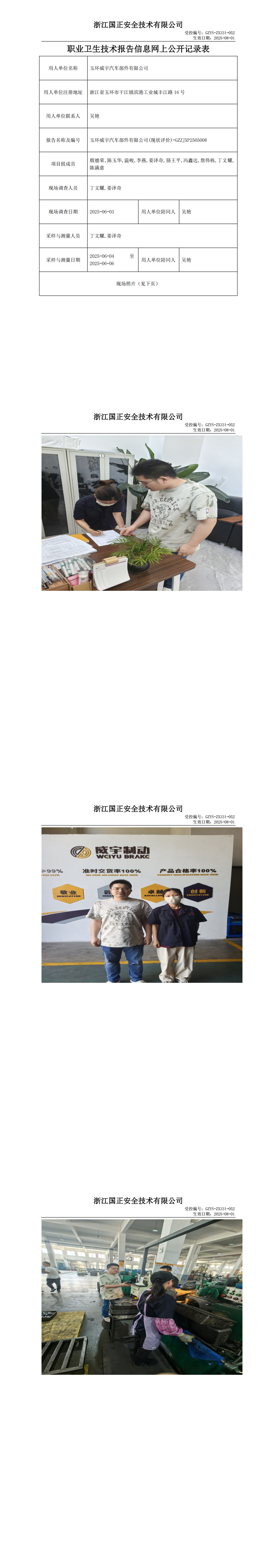GZZJXP2505008_玉环威宇汽车部件有限公司(现状评价)职业卫生检测与评价报告网上公开表