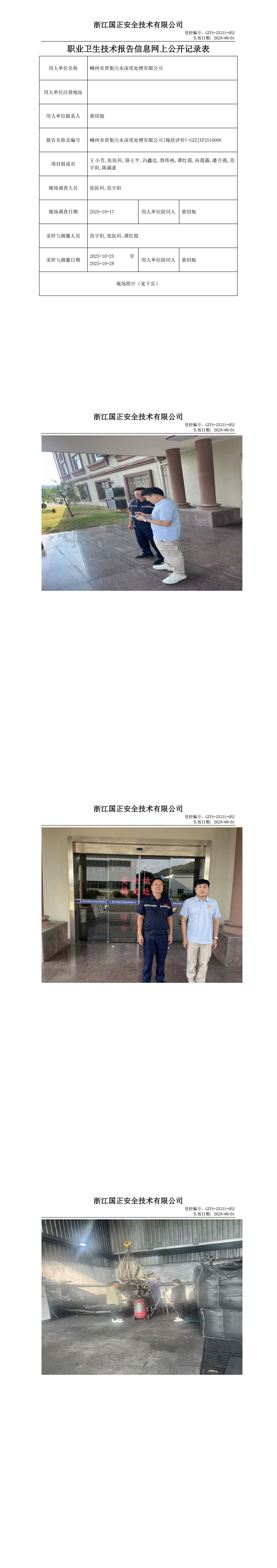 嵊州市君集污水深度处理有限公司(现状评价)-GZZJXP2510006 职业卫生检测与评价报告网上公开表