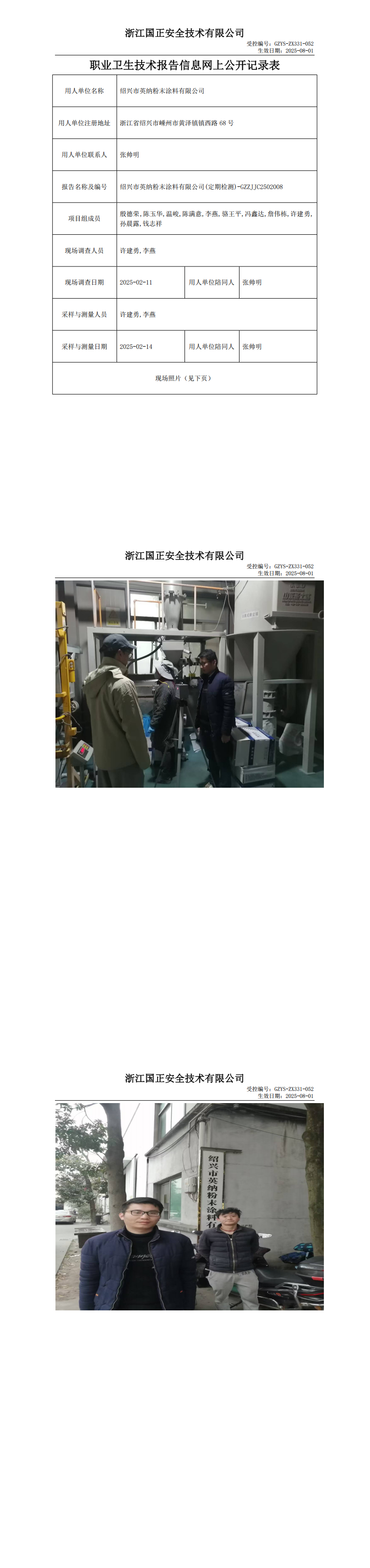 GZZJJC2502008绍兴市英纳粉末涂料有限公司工作场所职业病危害因素检测报告网上公开信息表